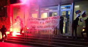 Fumogeni, uno striscione dal contenuto chiarissimo e del nastro per bloccare gli ingressi. Blitz lunedì sera agli studi Rai di corso Sempione a Milano...